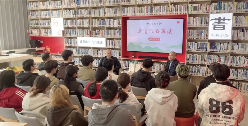 本次活动以“以书为友,共话成长”为主题,旨在搭建师生深度交流的阅读平台,引导广大学生养成良好的阅读习惯。王士恒教授分享了路遥的长篇小说《平凡的世界》,以罗曼·罗兰“世界上只有一种真正的英雄主义,那就是在认清生活的真相后依然热爱生活”为引言,深入剖析了这部现实主义巨著的精神内核。王教授通过孙少安、孙少平兄弟的奋斗历程,阐释了“平凡”与“伟大”的辩证关系,引导同学们在平凡生活中寻找幸福。随后,张帅老师分享了诺贝尔文学奖得主莫言的文学创作与代表作品。张老师以“莫言其人、莫言其奖、莫言其作”为主线,系统介绍了莫言成为首位中国籍诺贝尔文学奖获得者的文学历程。他重点分享了莫言的多部代表作品,包括《三十年前的一次长跑比赛》《生死疲劳》等,引导同学们感受莫言作品中荒诞与现实交织的独特魅力,以及对中国乡土社会的深刻洞察。